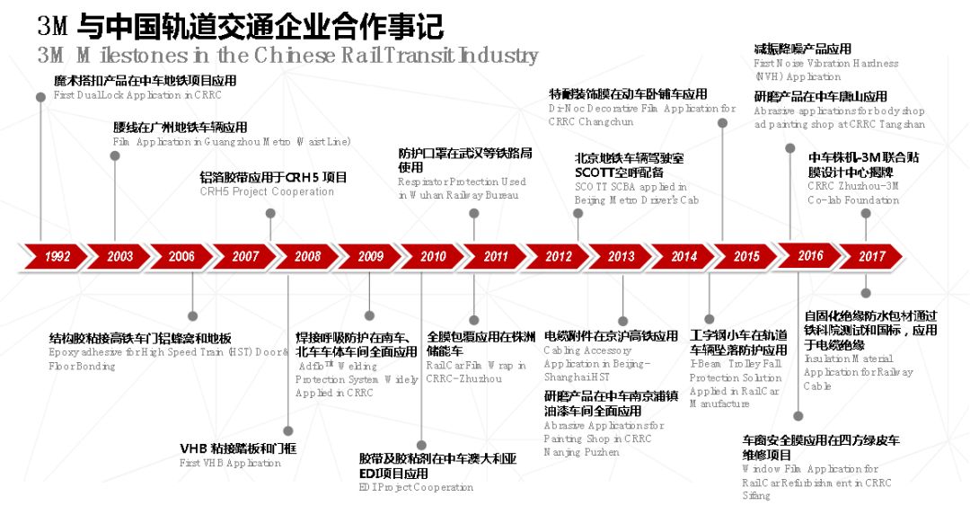 早在1992年3M就起頭與國際軌道交通行業協作,在曩昔的26年中,咱們努力于將3M環球進步前輩的立異產物和手藝推行操縱到中國市場,助力軌道交通行業的成長。