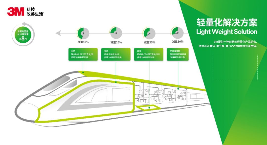 在中國軌道交通成長過程中,3M與中車的協作功效豐富,從用于列車制作的膠帶及膠粘劑、研磨、電纜附件,到晉升列車情況的表里貼膜、減震降噪、削減內裝無害氣體的產物,和工人勞保安全的呼吸、聽力、防墜落等產物和手藝,這些都是3M在中國軌道交通行業的堅固萍蹤。