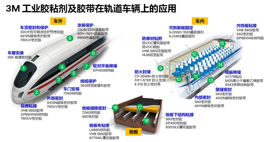 軌道交通的成長對國度的經濟成長與通俗百姓的糊口都有著深遠的影響,在軌道交通行業3M公司已堆集了40多年的經歷和手藝,并與環球浩繁協作火伴展開了杰出的協作,為軌道車輛供給安穩、便利的粘接計劃。